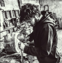 His initial stage is research with artistic recycling participating in different editions of the Drap-Art (2013-2017) and Sitges RiciclArt (2016-2017). He is currently experimenting with wood carving although he often incorporates details from other materials.